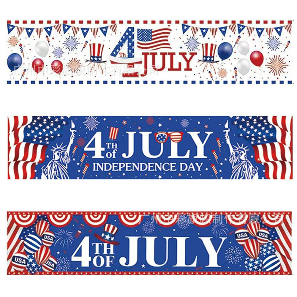 1pc 180*40cm Happy 4th of July Banner Outdoor Independence Day Flag National Day Yard Sign Decorations American Party Supplies
