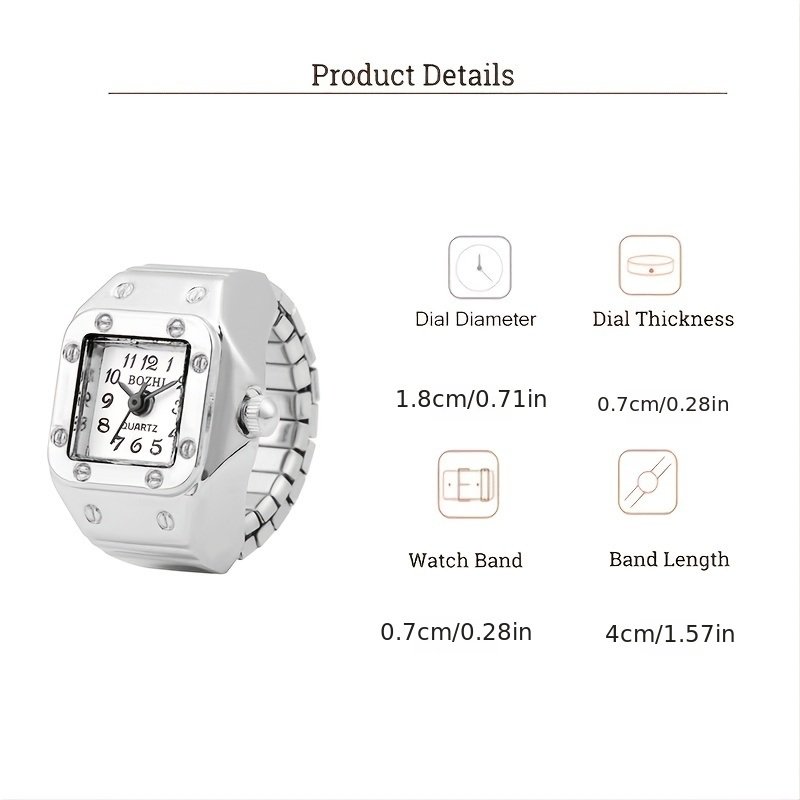 Unique Design: A perfect combination of finger ring and a watch; of practical use and decoration. This funky ring watch is a fashion accessory for your daily dressing match.