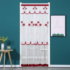 Double Yarn Door Curtain Anti-mosquito Flowers Embroidery Mute Bedroom Living Room Bathroom Universal Partition Home Decoration (Color: Red, size: 90x210cm)